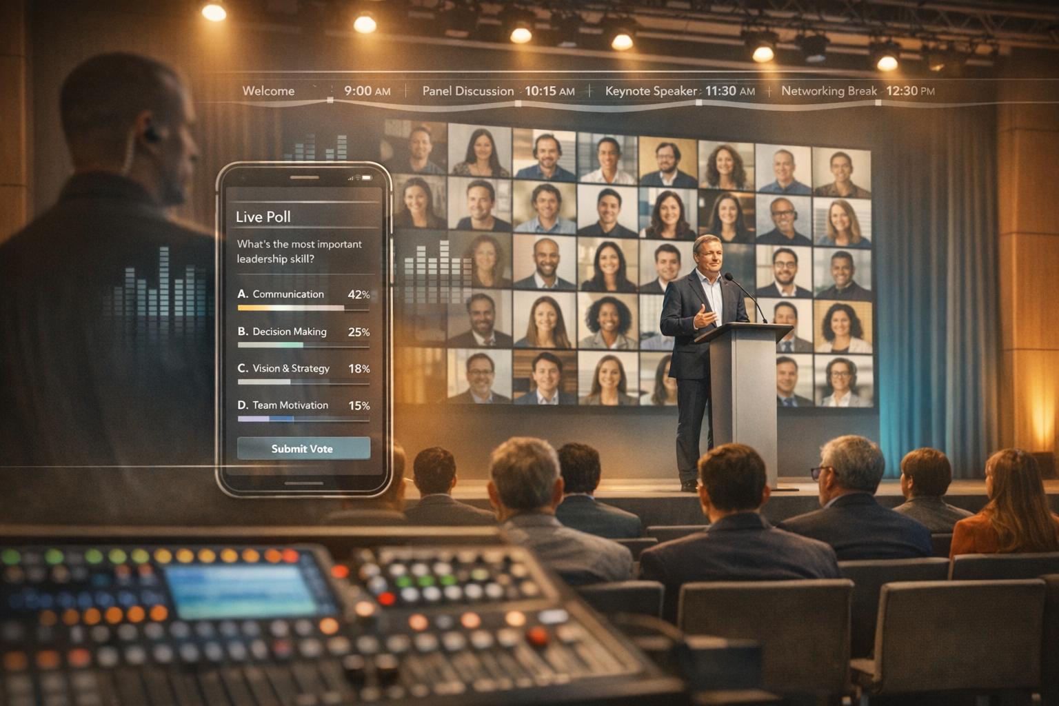 Redundant systems, like dual streaming paths, hot-swappable components, and backup audio mixers, can be lifesavers if the main equipment goes down. It's also wise to test all backup gear - whether it's a secondary microphone or an extra projector - before the event starts. These precautions can help you sidestep technical hiccups and maintain a polished, professional atmosphere, no matter what surprises come your way.