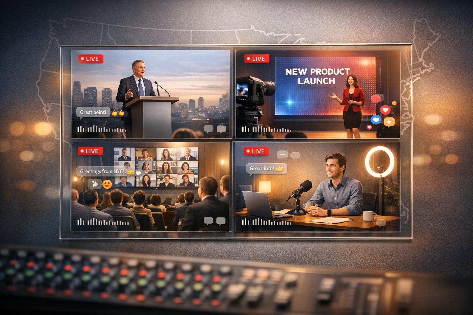 For instance, a product launch might call for dynamic visuals, such as multiple camera angles, professional-grade lighting, and crystal-clear audio. On the other hand, a crisis response press conference would prioritize simplicity, reliability, and control over flashy features. The scale of the event matters too - announcing a local business opening is far less demanding than presenting a Fortune 500 company's quarterly earnings report.